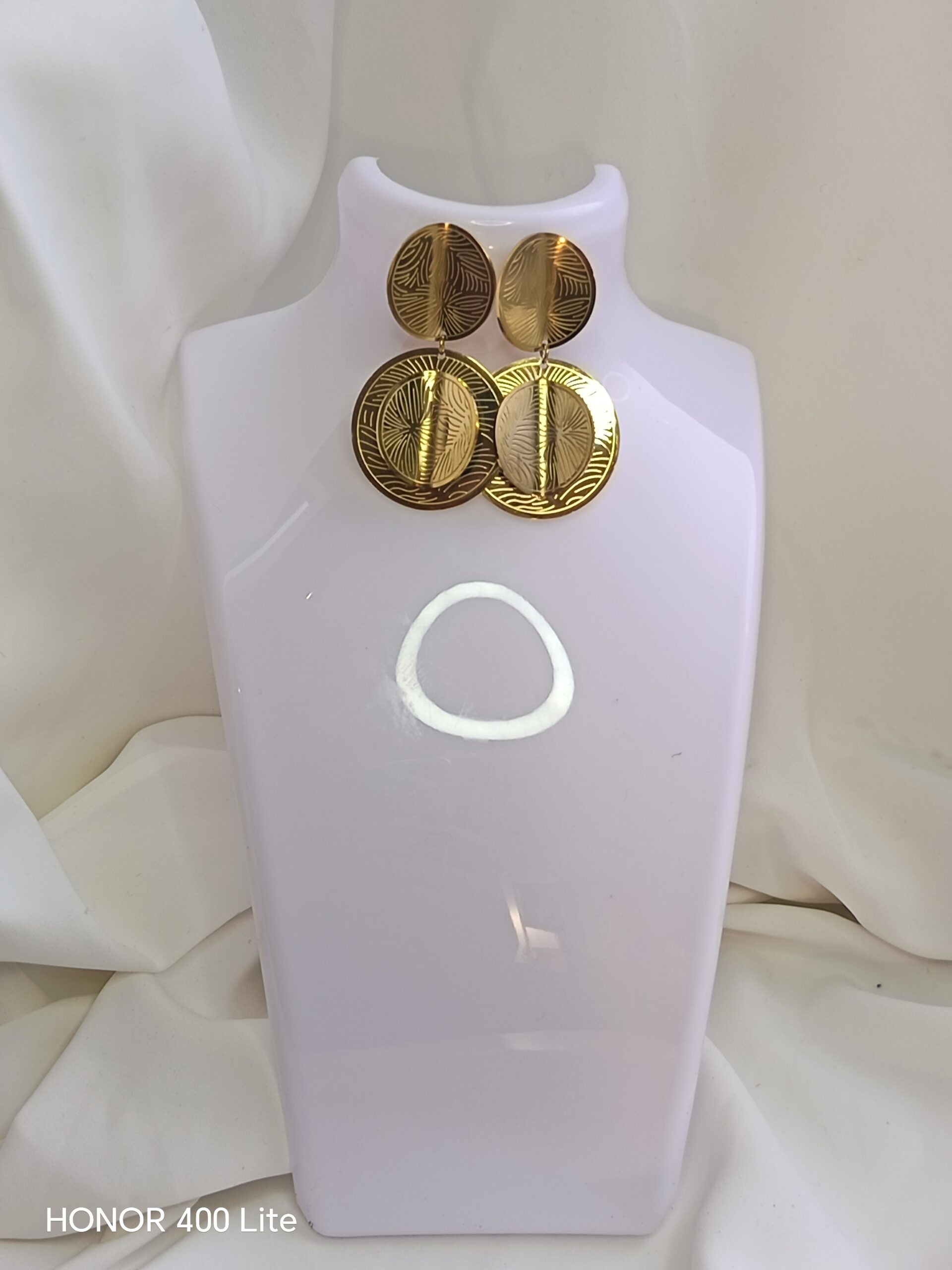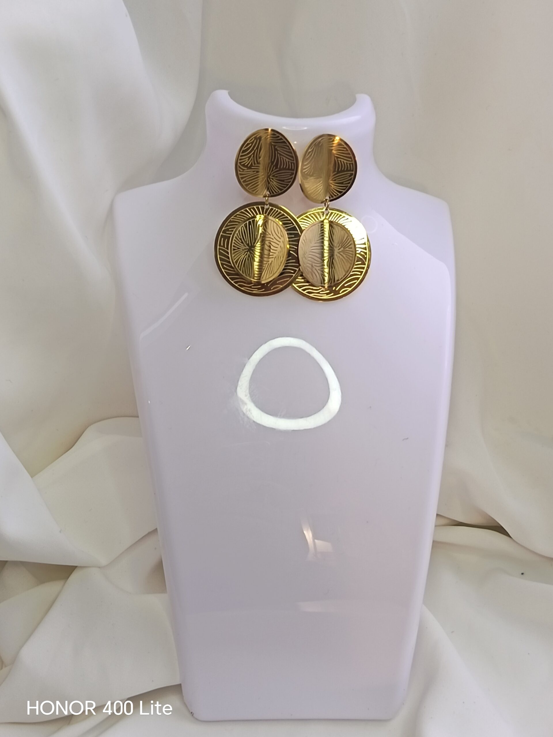 Ces boucles d’oreilles associent harmonieusement trois disques gravés et créent un superbe jeu de volumes. Elles subliment votre présence : vous respirez l’assurance.