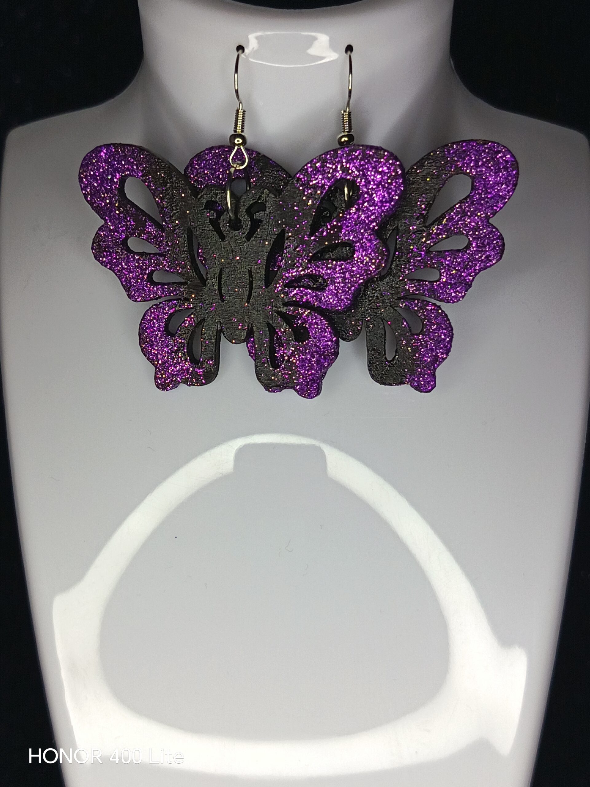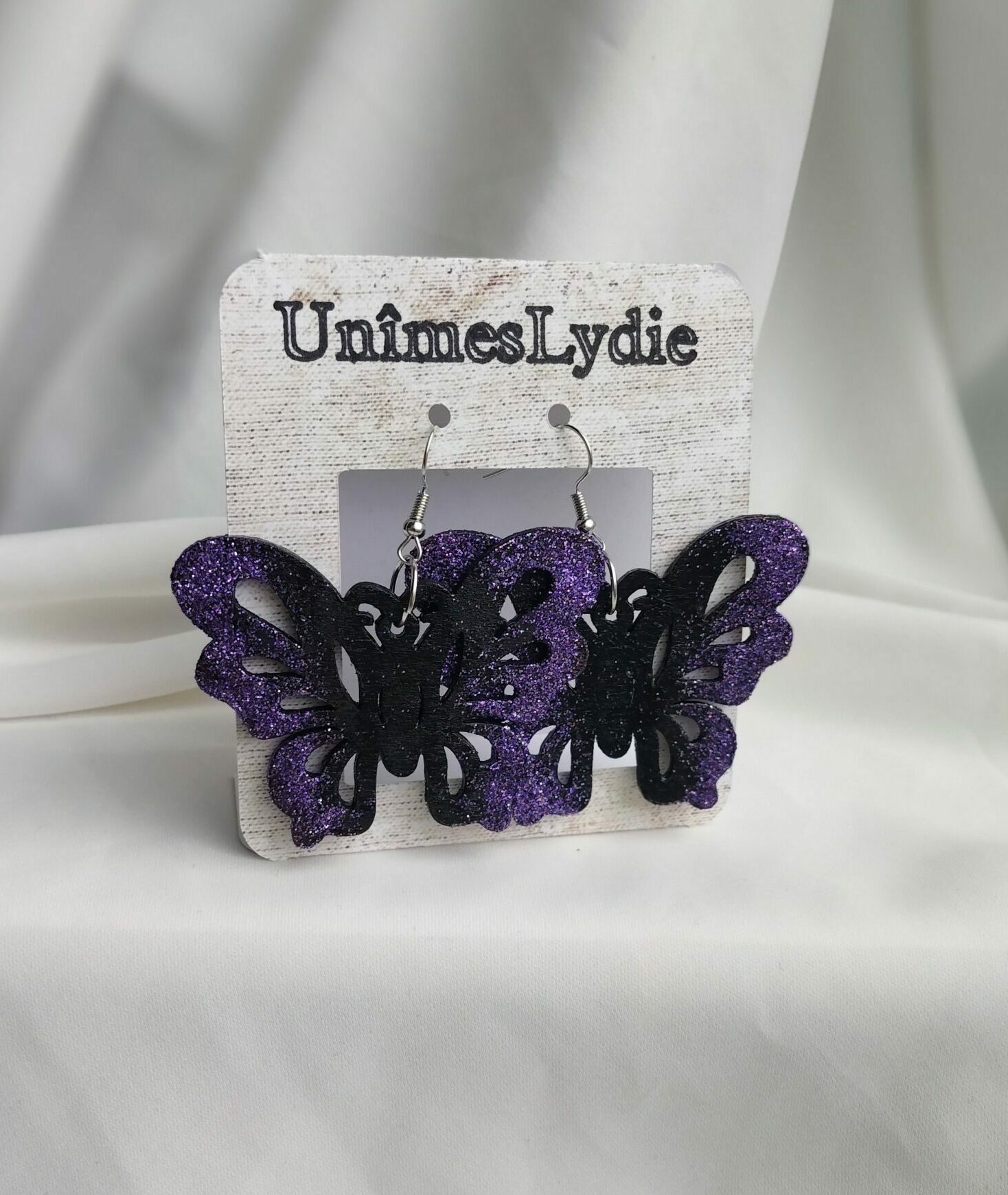 Boucles d’oreilles Procyon – Modèle atypique en bois peint à la main.